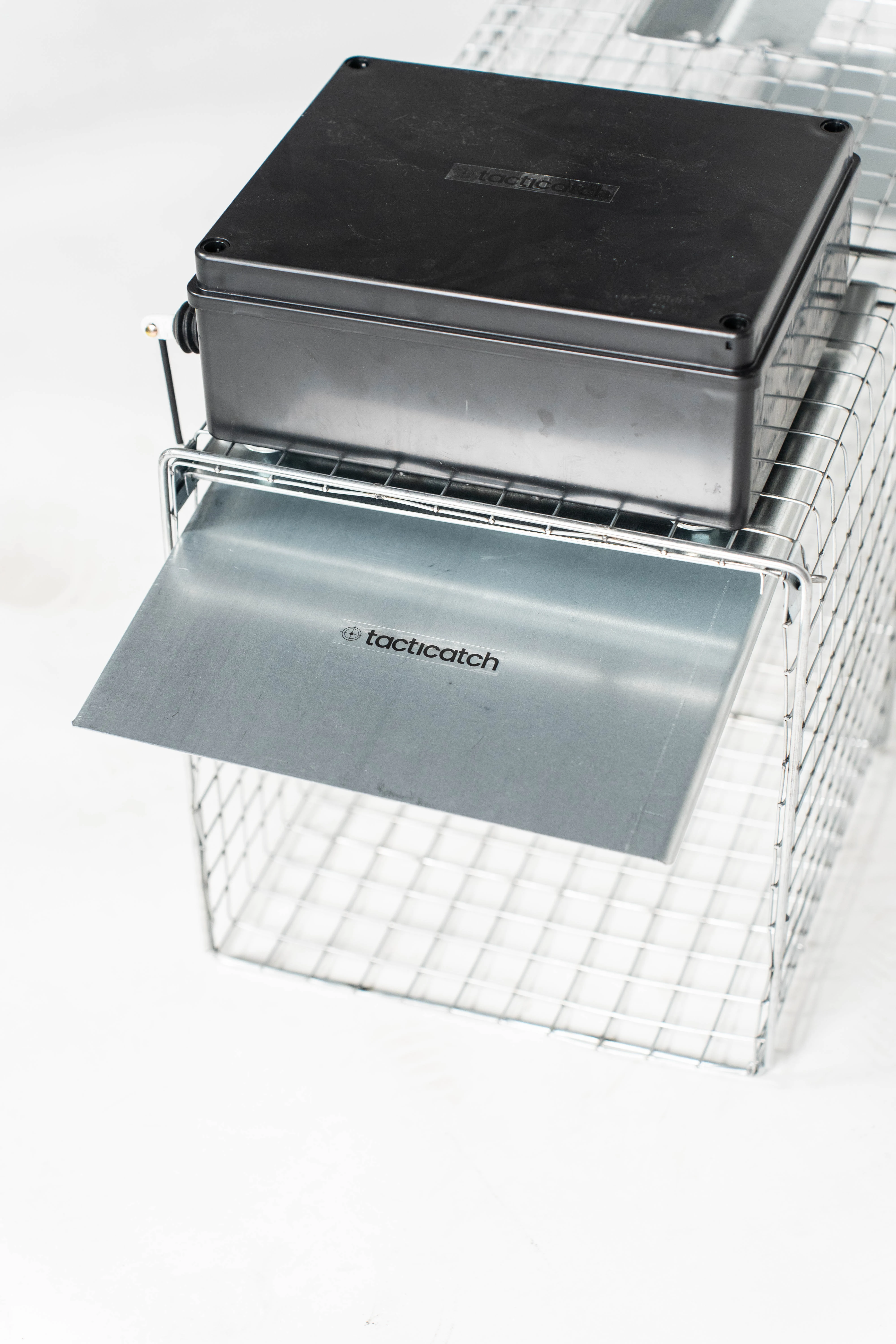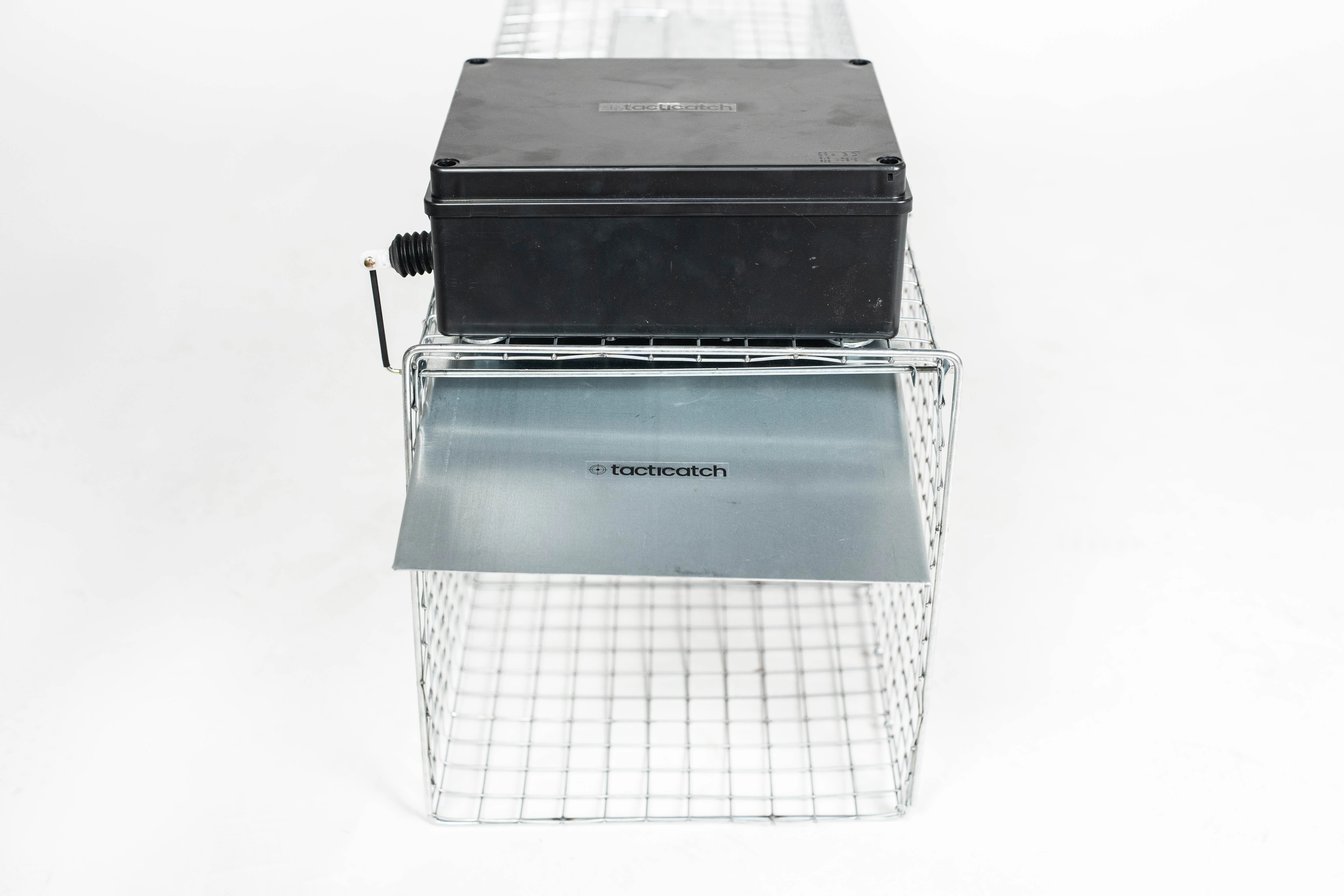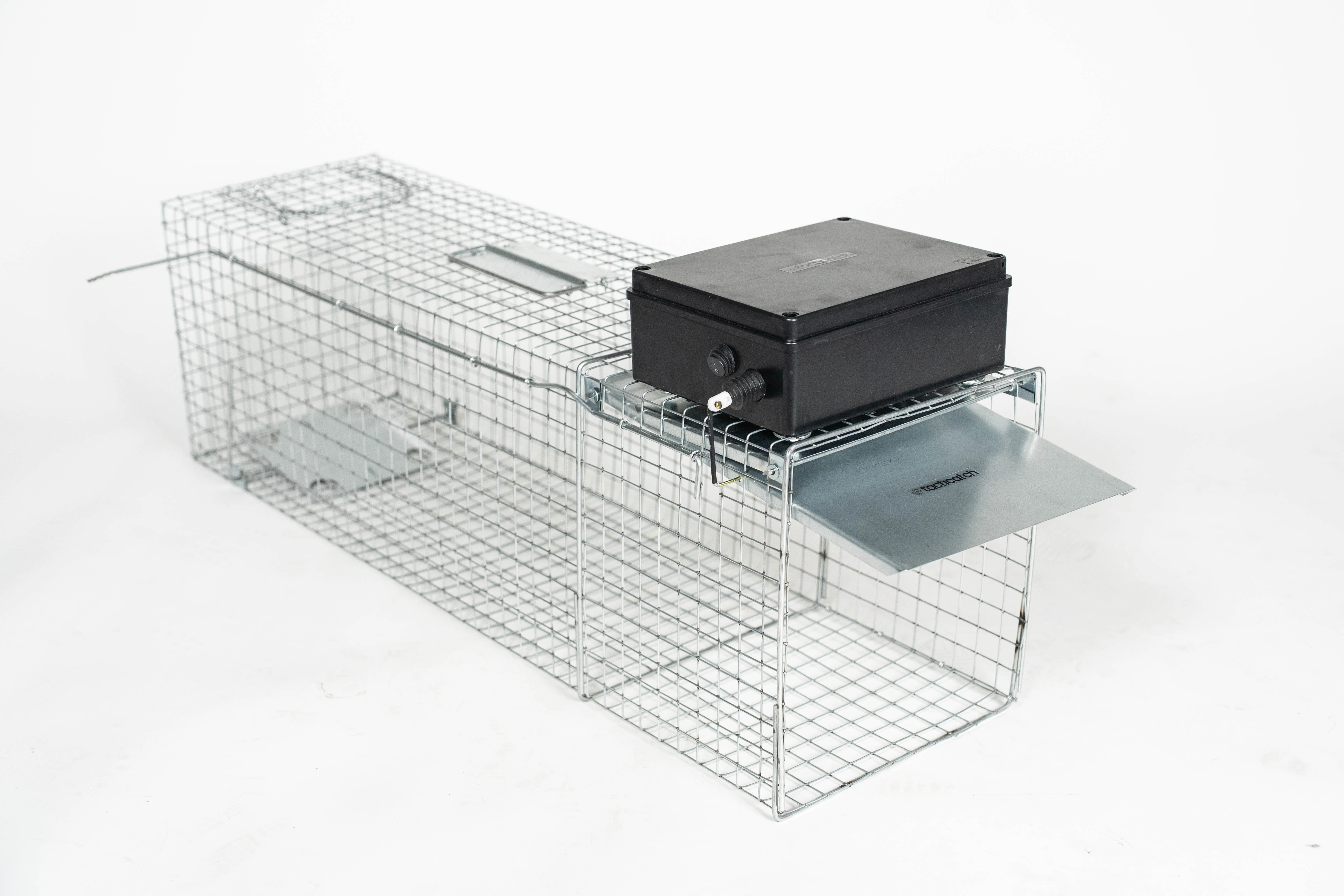 Tacticatch - QuickTrap R60 to zdalnie zamykana klatka do odłowu małych ssaków (moduł w obudowie odpornej na deszcz i inne warunki atmosferyczne) z podwójnym trybem wyzwalania poprze pilot radiowy lub mechaniczny spust na przynętę.