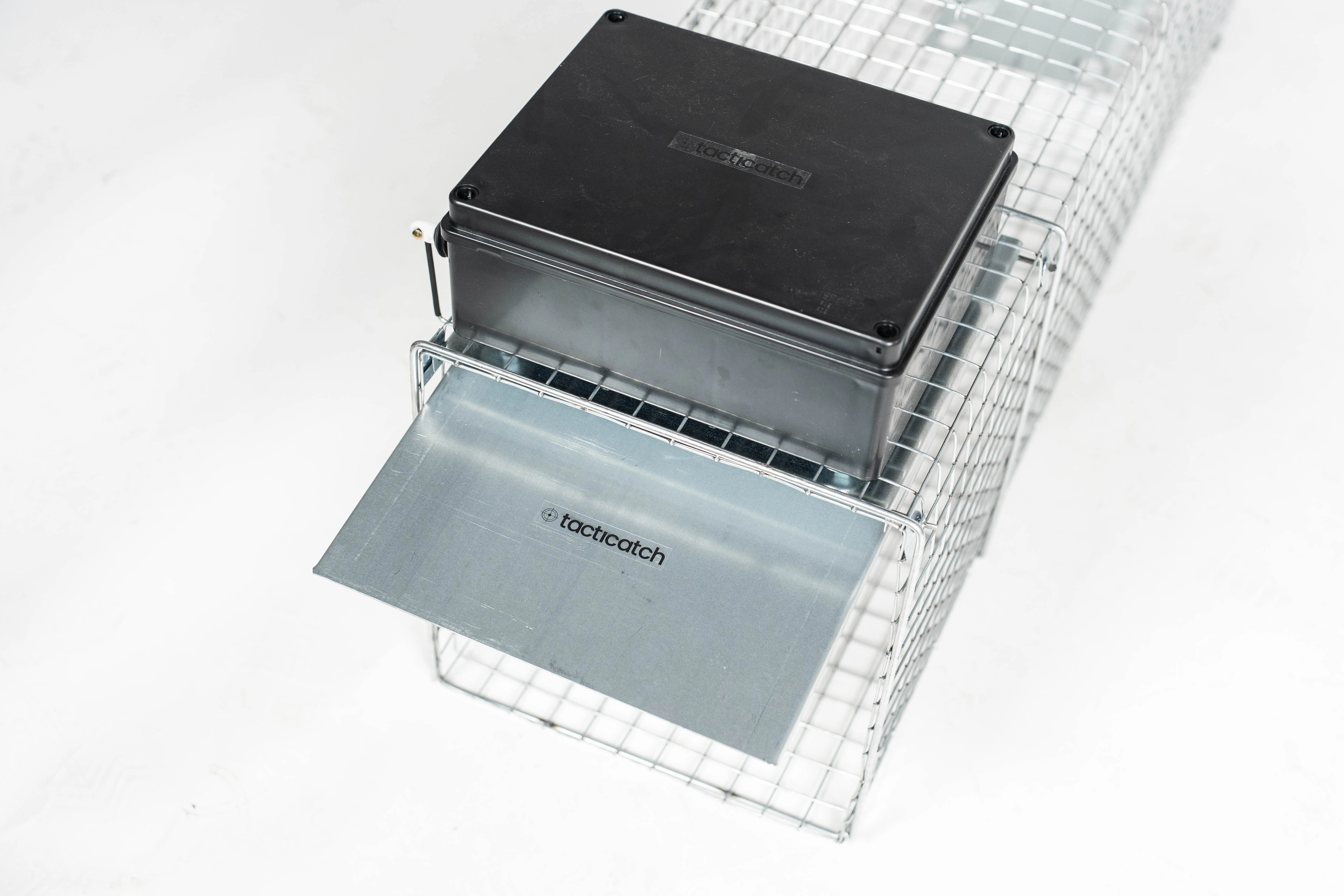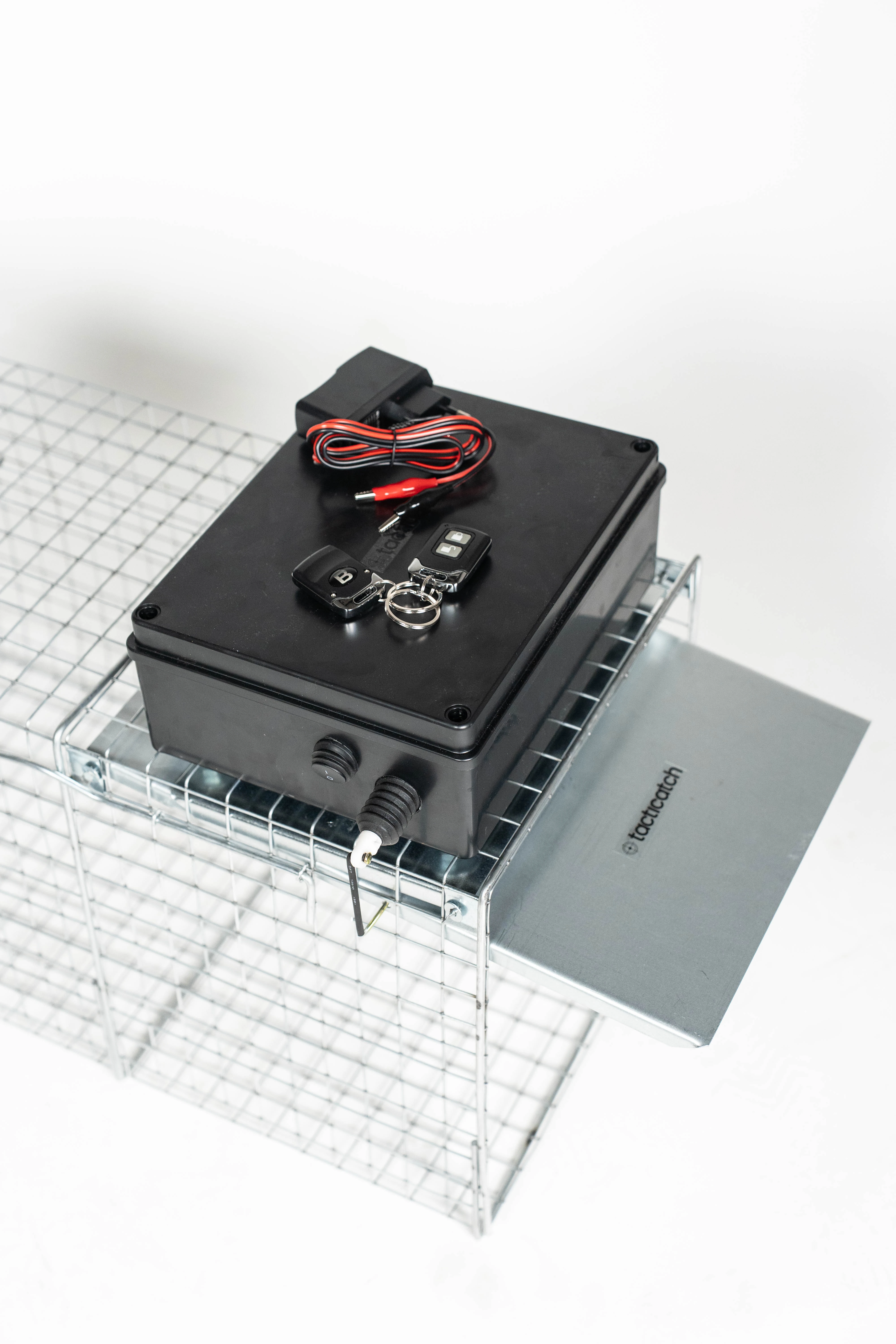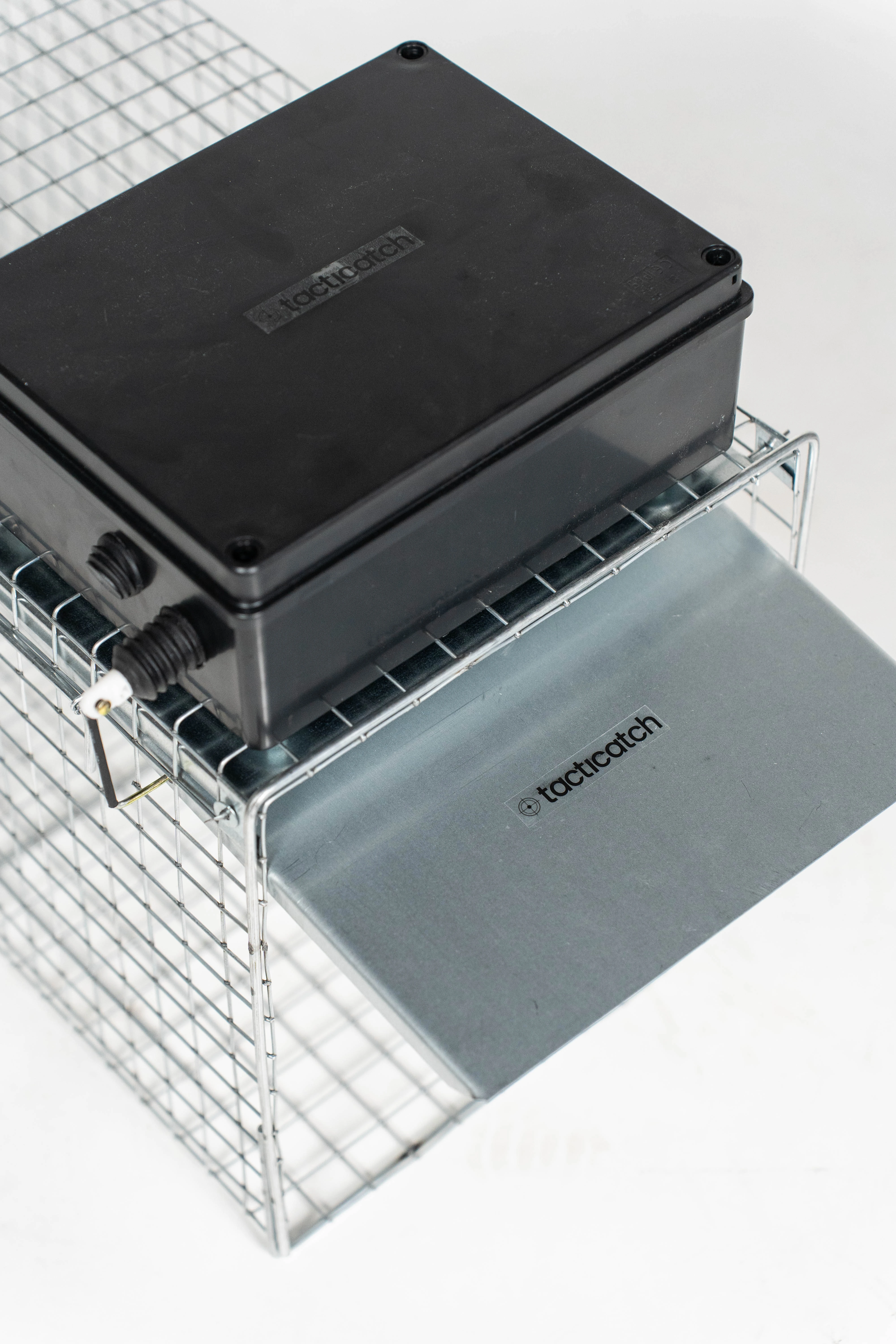 Tacticatch - QuickTrap R60 to zdalnie zamykana klatka do odłowu małych ssaków (moduł w obudowie odpornej na deszcz i inne warunki atmosferyczne) z podwójnym trybem wyzwalania poprze pilot radiowy lub mechaniczny spust na przynętę.